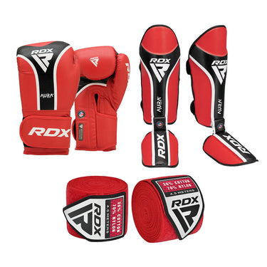 🥊 Combo Muay Thai/Kickboxing: Guantes + Canilleras Aura Plus T17 + Vendas WX